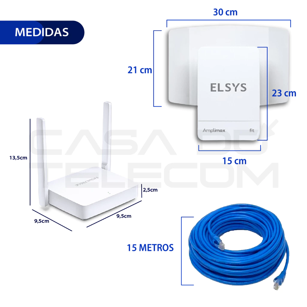KIT COM OTIMO BENEFICO.AMPLIMAX FIT + ROTEADOR 2 ANTENAS + CABO 15M
