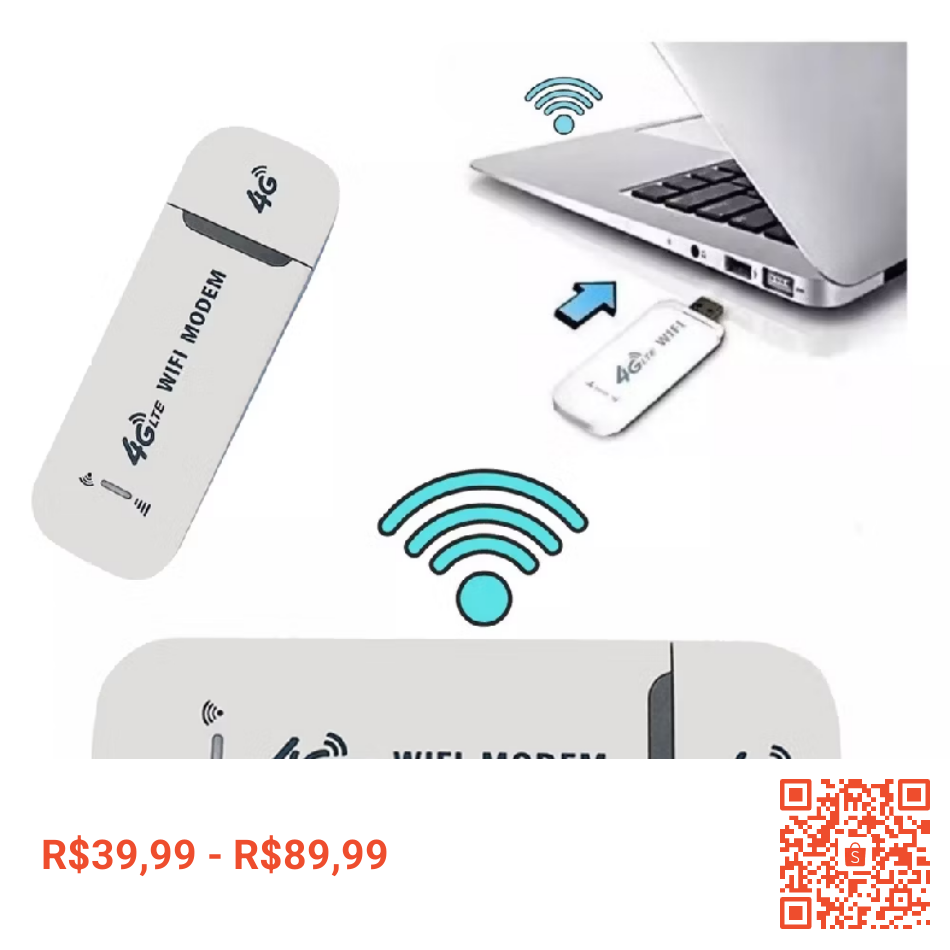 Crie uma rede WiFi em qualquer lugar com o Modem 4G LTE. Para utilizar, insira o Mini Chip no Modem e coloque-o em alguma fonte de alimentação para ativar. Após a iniciação, que dura entre 35-60 segundos, você já estará pronto para se conectar a rede WiFi criada a partir do Modem e se conectar a internet.